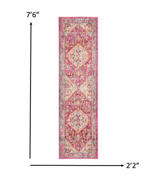 2’ x 8’ Ivory and Pink Oriental Runner Rug